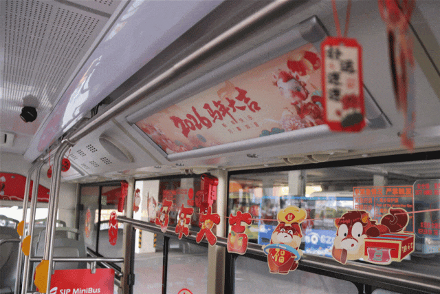 在保障運輸暢通的同時,節(jié)日的溫暖也融入車廂細節(jié)。以“新春逐光、馬踏春陽”為主題的新春裝飾,讓乘客一踏入車廂便感受到濃濃年味。春運期間,新惠巴士將持續(xù)以溫馨服務、整潔環(huán)境,守護每一位乘客的歸途,讓新春祝福隨公交一路傳遞。