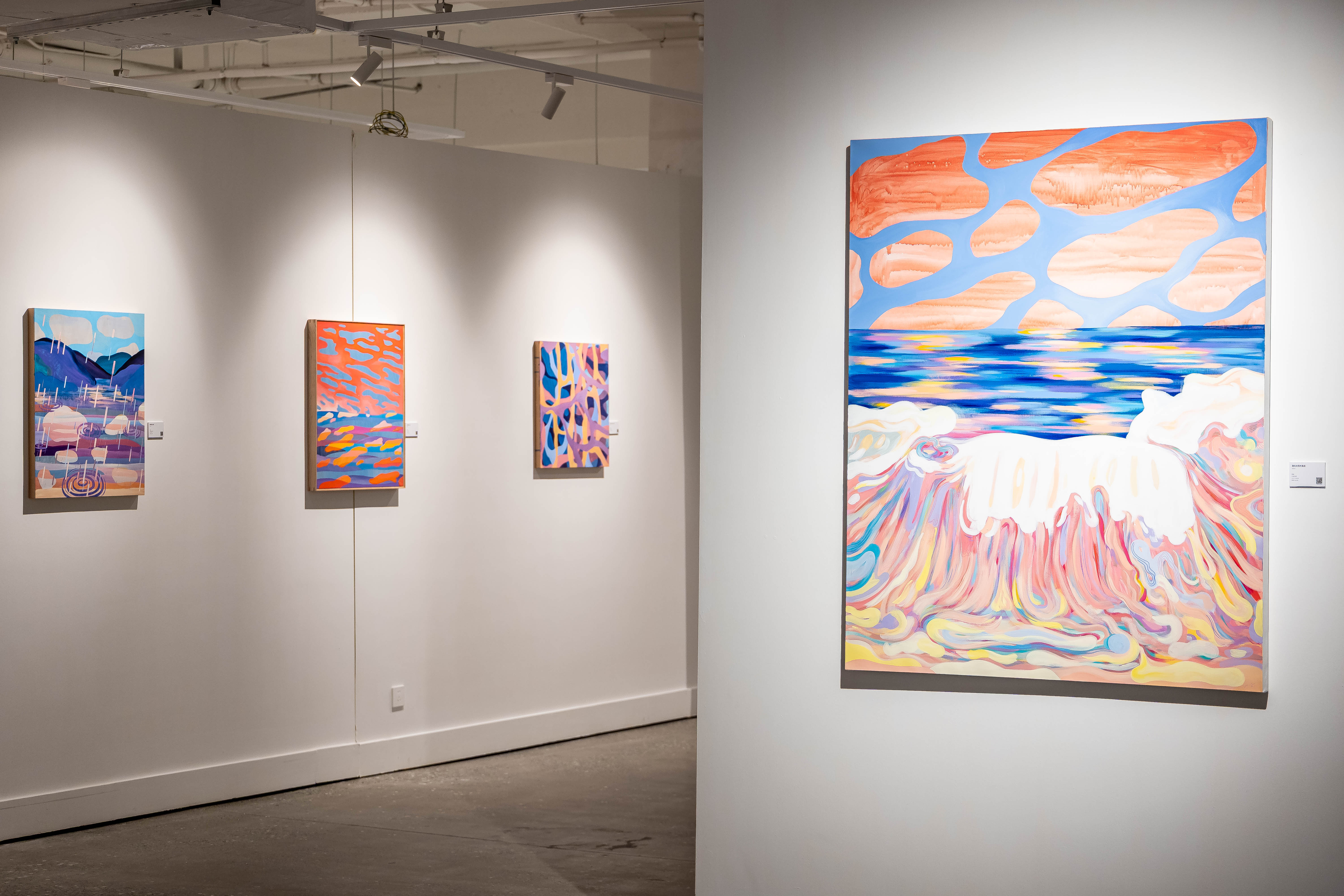 譚坤的創(chuàng)作摒棄了對現(xiàn)實的復刻,以王爾德童話為創(chuàng)作靈感,憑借極具張力的色彩堆疊、細膩的符號編碼與富有敘事感的筆觸,將虛幻的精神投射與自然的生命秩序巧妙并置,悄然叩問“真實與虛構的邊界”這一深刻命題。觀者漫步于展廳之中,在色彩與符號的交織碰撞里,得以窺見內心深處的真實自我,完成一場與自我的溫柔對話。從女性自我意識的覺醒,到個體感知的重構;從對固有標簽的解構,到對精神世界的探索,兩場展覽雖各有側重,卻共同傳遞著“尊重差異、擁抱自我”的核心主張。
