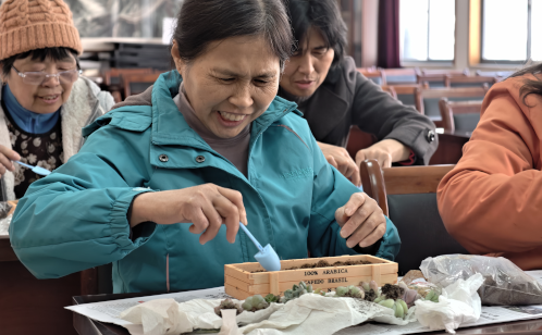 梅花社區(qū)新時代文明實踐站聯(lián)合街道就業(yè)公司組織開展的多肉種植主題活動,吸引了不少居民前來體驗。社區(qū)活動室里,木質(zhì)種植盒、形態(tài)各異的多肉幼苗、營養(yǎng)土、鋪面石等工具材料一應俱全。居民們先將營養(yǎng)土均勻填入盒中,輕輕撫平,再小心翼翼地挑選心儀的多肉組合,用小鏟子刨坑移栽,調(diào)整好疏密與高低,最后鋪上圓潤的鋪面石進行點綴。不一會兒,一盆盆錯落有致的多肉微景觀便呈現(xiàn)在眼前。此次活動拉近了鄰里的距離,讓綠色成為連接情感的紐帶。