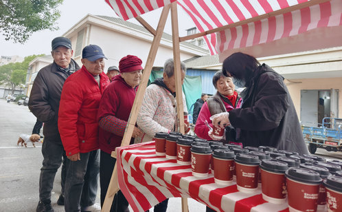 一碗熱氣騰騰的湯圓,是這場相聚中溫情的注腳。金益社區(qū)小區(qū)門口甜香四溢,社區(qū)工作人員、物業(yè)人員“紅色管家”志愿者們早早煮好湯圓,保溫靜置、分裝整齊,遞予過往居民。大家捧著溫熱的瓷碗,有人現(xiàn)場品嘗,有人打包分享,一句句“謝謝”“趁熱吃”讓暖意在街巷間流動。志愿者們還將湯圓送到保安、保潔手中,致敬這些默默堅守一線的守護者。
