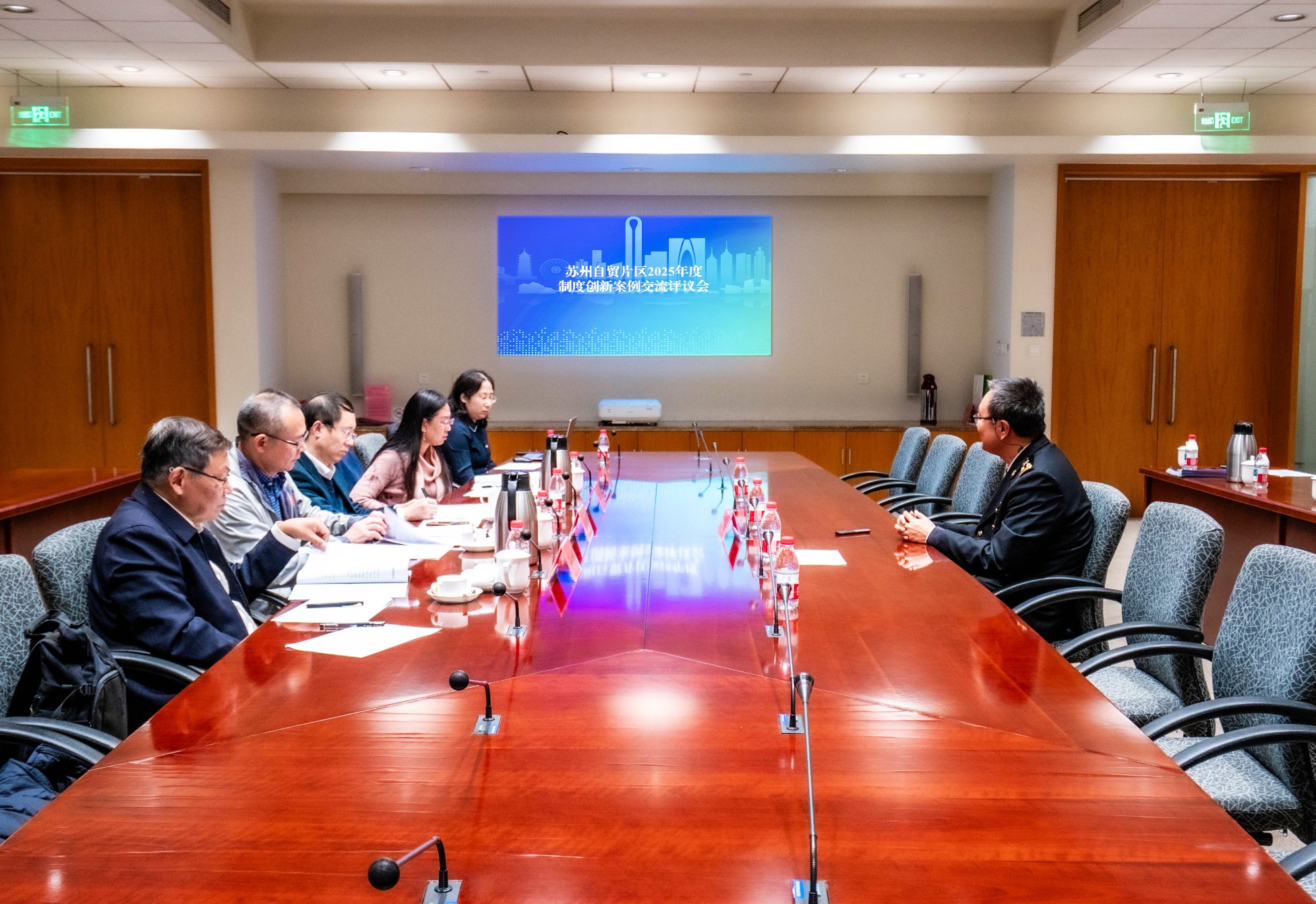 現場,專家開展面對面評議,圍繞案例的戰略性、創新性、實效性、可推廣性與風險可控性進行深入剖析,并從提升集成度、增強系統性、拓展應用面等角度提出優化建議,助力片區進一步打磨案例、凝練經驗。專家們高度認可蘇州自貿片區在集成改革、服務實體、探索前沿規則方面的成效,認為多項案例具備全國推廣價值。同時,他們也就如何進一步對標國際高標準經貿規則、加強改革系統集成、推動創新成果標準化制度化等建言獻策,為片區下一步深化改革、擴大開放提供了重要的智力支持和方向指引。