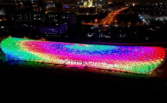 There are 5,478 sets of floodlights on the surface of the vast canopy, shining with dazzling brilliance every night.