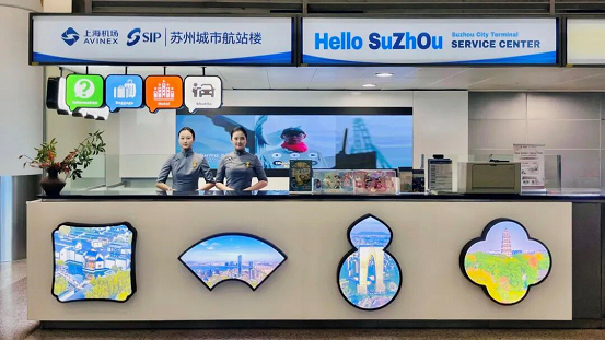 The service center is seamlessly connected to the Suzhou City Terminal of Shanghai Airport Authority (AVINEX) in SIP to form a “bi-directional service loop” for international passengers looking to tour Suzhou.