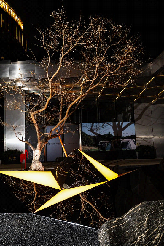 At the center of the installation, 3.84 meters high, a circular “Sky Mirror Light” symbolizes the Earth-Moon distance. It adjusts intelligently with natural light, with reflections merging with the night scenery to form a dynamic picture. From any angle, viewers can see a “full moon” in the mirror, which symbolizes inner wholeness and purity amid life’s complexities.