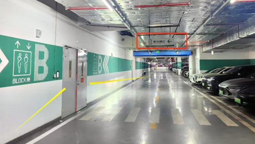 自駕:導航至“揚富路10號新建元數智灣B座”,進門右轉進入地庫,地庫電梯指引如下圖所示: