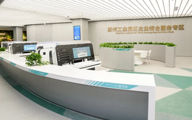 王女士的辦事體驗只是園區(qū)“三服務”行動的一個縮影。面對復雜業(yè)務與個性化需求,園區(qū)打造以市民服務中心為核心、多個企業(yè)綜合服務驛站為觸角的“1+N”服務網絡。其中,在市民服務中心整合各類涉企服務,推出“企業(yè)綜合服務專區(qū)”,首創(chuàng)“2355”服務模式,創(chuàng)新“出生即享惠企服務包”、多部門專家協作服務模式(MDT)等舉措,最大程度實現“進一門辦理”。專區(qū)啟用以來,累計提供服務8.2萬次,智辦比例達73%。在基層,結合產業(yè)特色,積極推動政務服務、企業(yè)服務、產業(yè)服務融合創(chuàng)新,推出生物醫(yī)藥產業(yè)園、陽澄數谷等“企業(yè)綜合服務驛站”,辦理的企業(yè)登記業(yè)務占園區(qū)同類業(yè)務總量的56%,有效實現企業(yè)辦事“就近辦、快捷辦”。