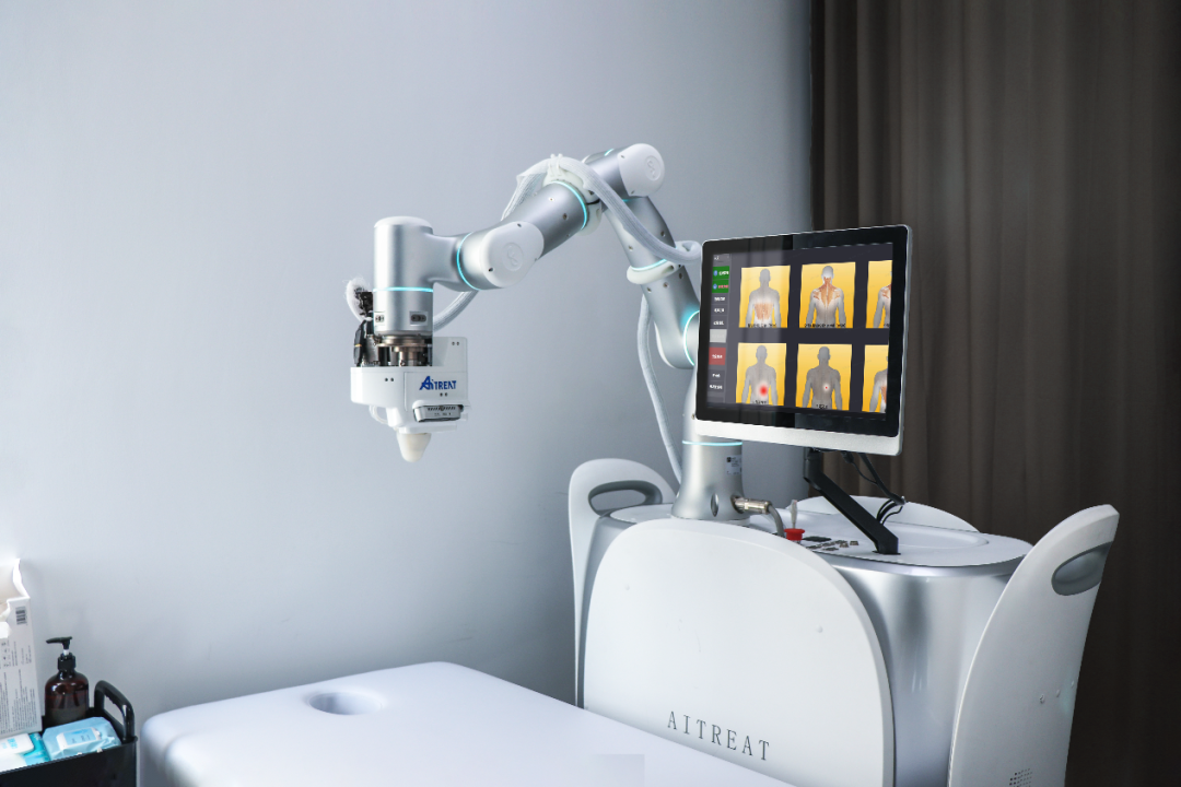 在新科研企業(yè)合作中心的工程實驗室內(nèi),技術(shù)人員正對一臺名為EMMA的智能理療機器人進行最后調(diào)試。該產(chǎn)品來自全球領(lǐng)先的智能理療機器人企業(yè)安韋澤(AiTreat)。
