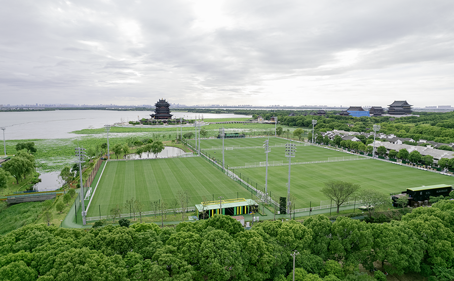 如果說新建元國際網球中心是“優雅擔當”,那么不遠處的陽澄湖半島足球公園則稱得上“活力引擎”。公園坐擁5片國內最高標準的濱水天然草足球場,按照“世界眼光、國際標準、蘇州特色、園區品質”打造,球場評分均達到了FIFA國際足聯90分以上的評分。