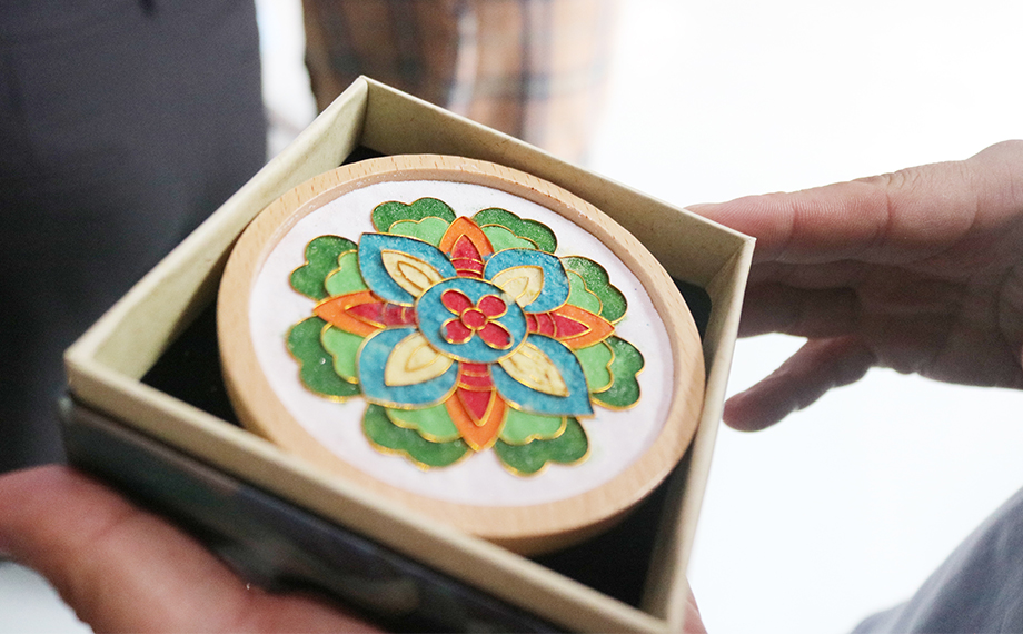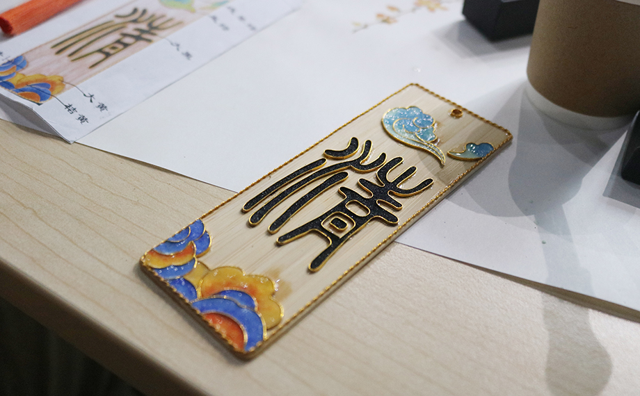 正是因?yàn)橐詼鬄榇淼牧汲純A力為民,社會(huì)才能進(jìn)步、時(shí)局才能穩(wěn)固,這也為乾隆時(shí)期景泰藍(lán)的復(fù)興創(chuàng)造了條件。景泰藍(lán),即掐絲琺瑯工藝,是中國(guó)的著名特種金屬工藝品類(lèi)之一。在隨后的文化體驗(yàn)課環(huán)節(jié),大家興致勃勃地在老師的講解和幫助下參與到景泰藍(lán)手工技藝的體驗(yàn)活動(dòng)中,以金絲作胎,填充色釉,制作出屬于自己的景泰藍(lán)工藝蓮花杯墊、書(shū)簽、小鏡,用蓮心現(xiàn)廉韻,感受傳統(tǒng)文化魅力。