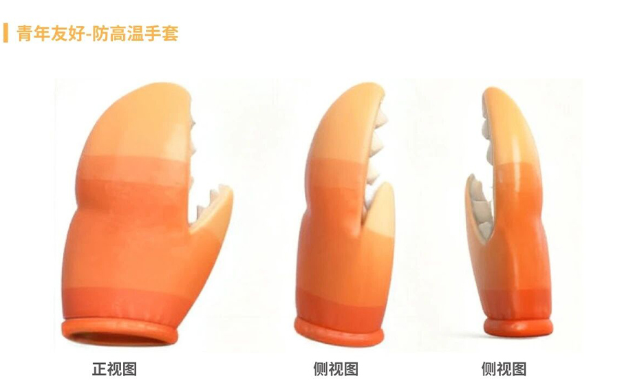 作品緊扣“實(shí)用主義”,深刻理解年輕人對“顏值與實(shí)力并存”的追求。防高溫手套內(nèi)部采用高效隔熱材料,外部防滑耐磨;止汗帶主體使用高彈、吸汗快干面料,確保功能性與舒適度。螃蟹背包造型萌趣,構(gòu)成了一個積極快樂的卡通形象,讓孩子能夠在出行中編織自己與“蟹寶”的故事。