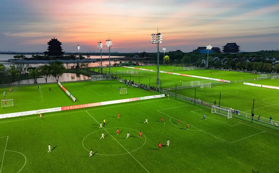 作為比賽場地的陽澄湖半島足球公園,設有6片飛盤場地,均采用達到國際足聯認證標準的11人制濱水真草場地。這里有國際足聯認證標準的真草,柔軟緩沖,保護每一寸奔跑的激情;優(yōu)質的排水系統(tǒng)與平整度,雨天不積水,晴日不揚塵,全天候保障比賽流暢;優(yōu)美的景觀設計,濱水而建,湖風拂面、綠意環(huán)繞,競技與自然在此完美融合……這里不僅是賽場,更是一片釋放熱情的飛盤樂園。