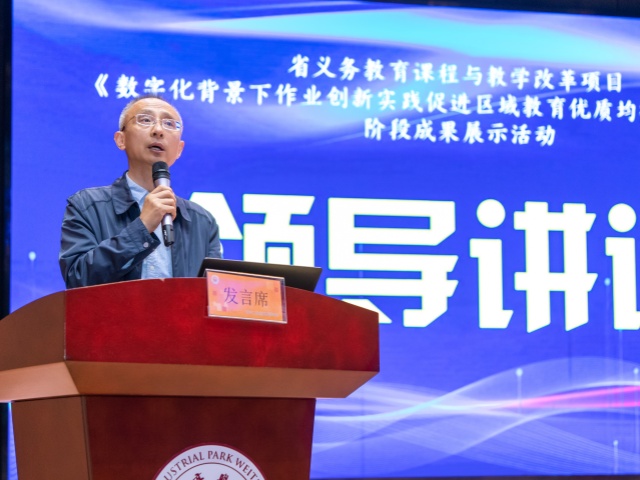 隨后,魏斯化代表項目組做工作匯報。他指出,區域聚焦"數字化背景下作業創新實踐",構建數據驅動?精準育人體系:依托易加作業平臺實現作業智能設計、分層推送、學情診斷全流程數字化,破解傳統作業效能瓶頸;通過教師技術賦能培訓與校教研組教師三級協同機制,推動作業管理從經驗范式向數據智能范式轉型,助力精準教學與個性化學習落地。當前項目錨定個性化學習場景優化、學科案例均衡培育、實踐成果理論化提升三大方向,著力深化技術+教育融合創新,構建區域教育優質均衡發展新生態。