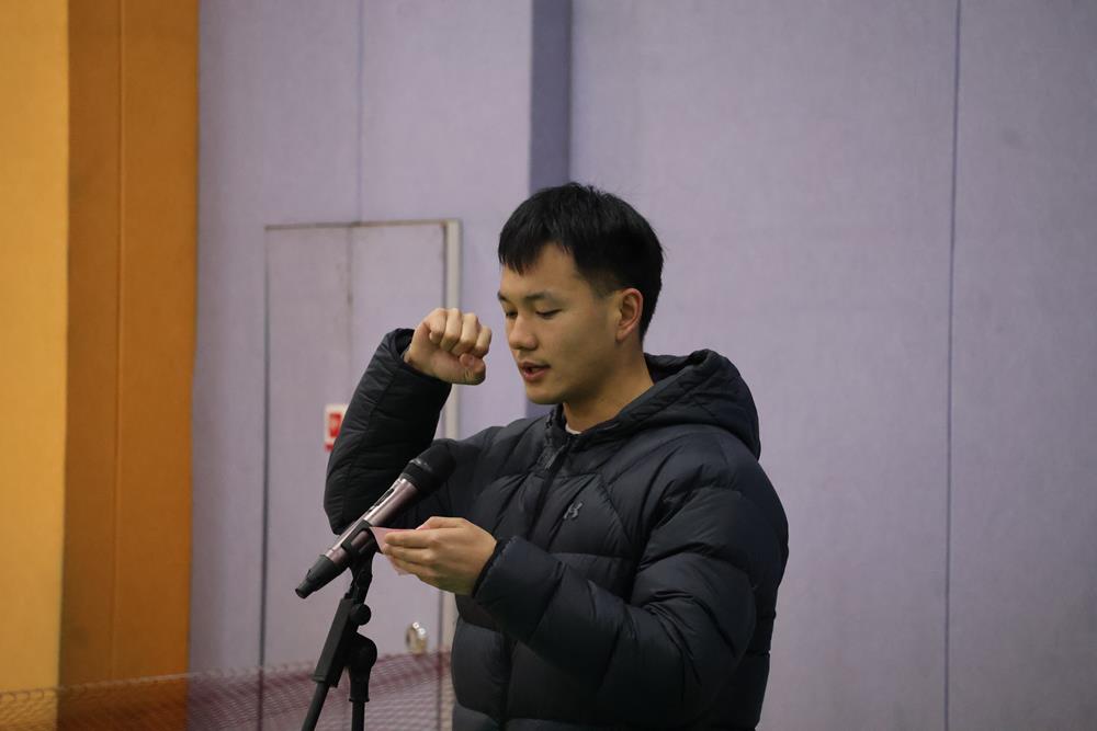 隨后,運(yùn)動(dòng)員代表登臺(tái)合影,裁判員代表陳子強(qiáng)老師與運(yùn)動(dòng)員代表封金明同學(xué)先后宣誓。